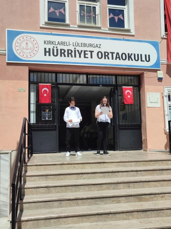 Gazi Mustafa Kemal Atatürk’ün çocuklara armağan ettiği 23 Nisan Ulusal Egemenlik ve Çocuk Bayramı’nı, okulumuzda büyük bir coşku ve gururla kutladık. Öğrencilerimizin hazırladığı gösteriler, bayramın ruhunu en güzel şekilde yansıttı; hem bizlere hem de izleyenlere unutulmaz anlar yaşattı. Milli egemenliğimizin simgesi olan bu özel günde, geleceğimizin teminatı olan çocuklarımızla birlikte olmanın mutluluğunu yaşadık. Tüm çocukların bayramı kutlu olsun!